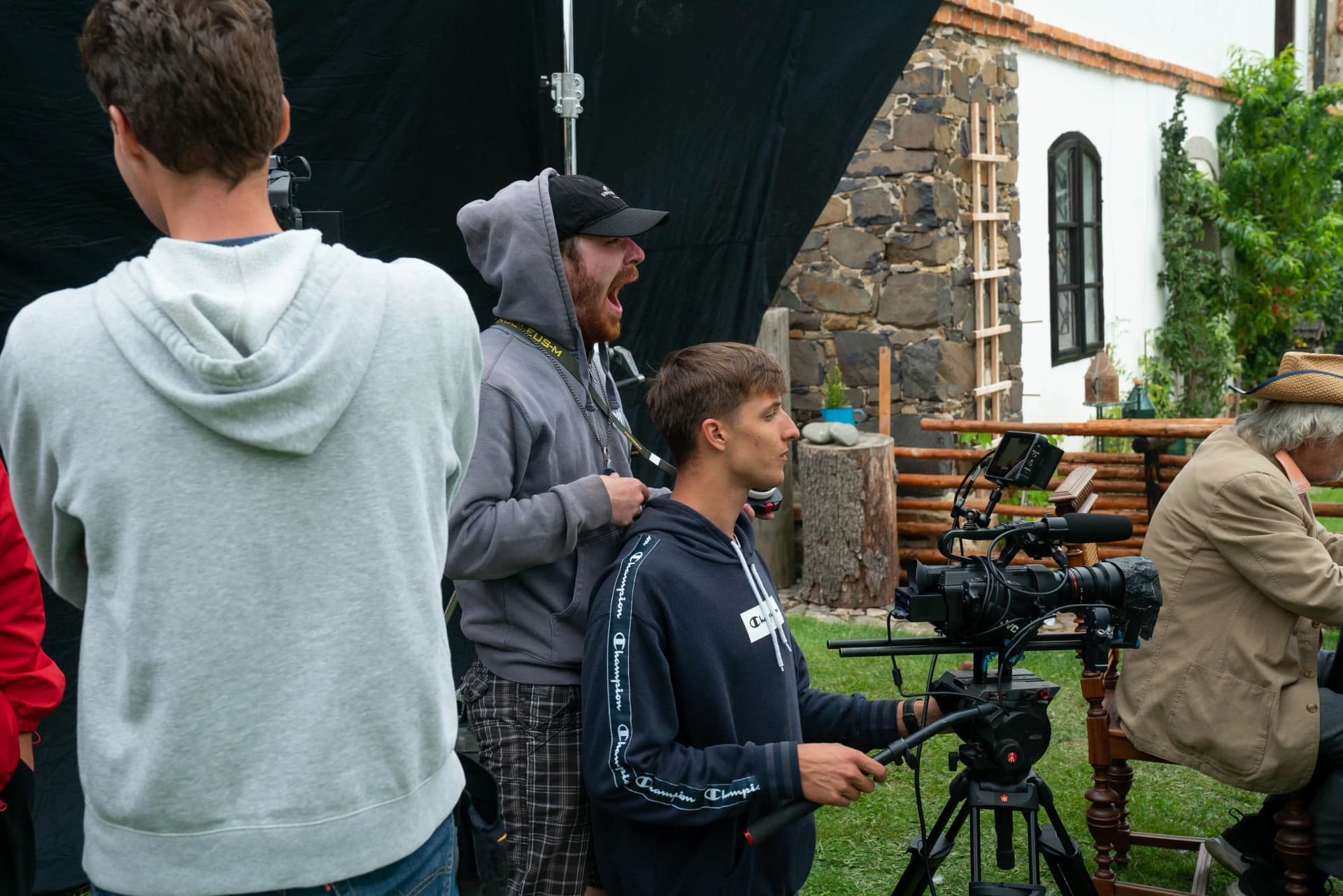 Tento film byl mým postupovým projektem do druhého ročníku. Cvičení s názvem „Němá etuda“ se kvůli pandemii natáčelo až o prázdninách v srpnu 2021. Úkolem bylo vyprávět příběh na libovolné téma, který divák pochopí i beze slov. Důraz byl kladen především na práci s hercem, a proto jsem do třech hlavních němých rolí obsadil přední české dabéry 😁