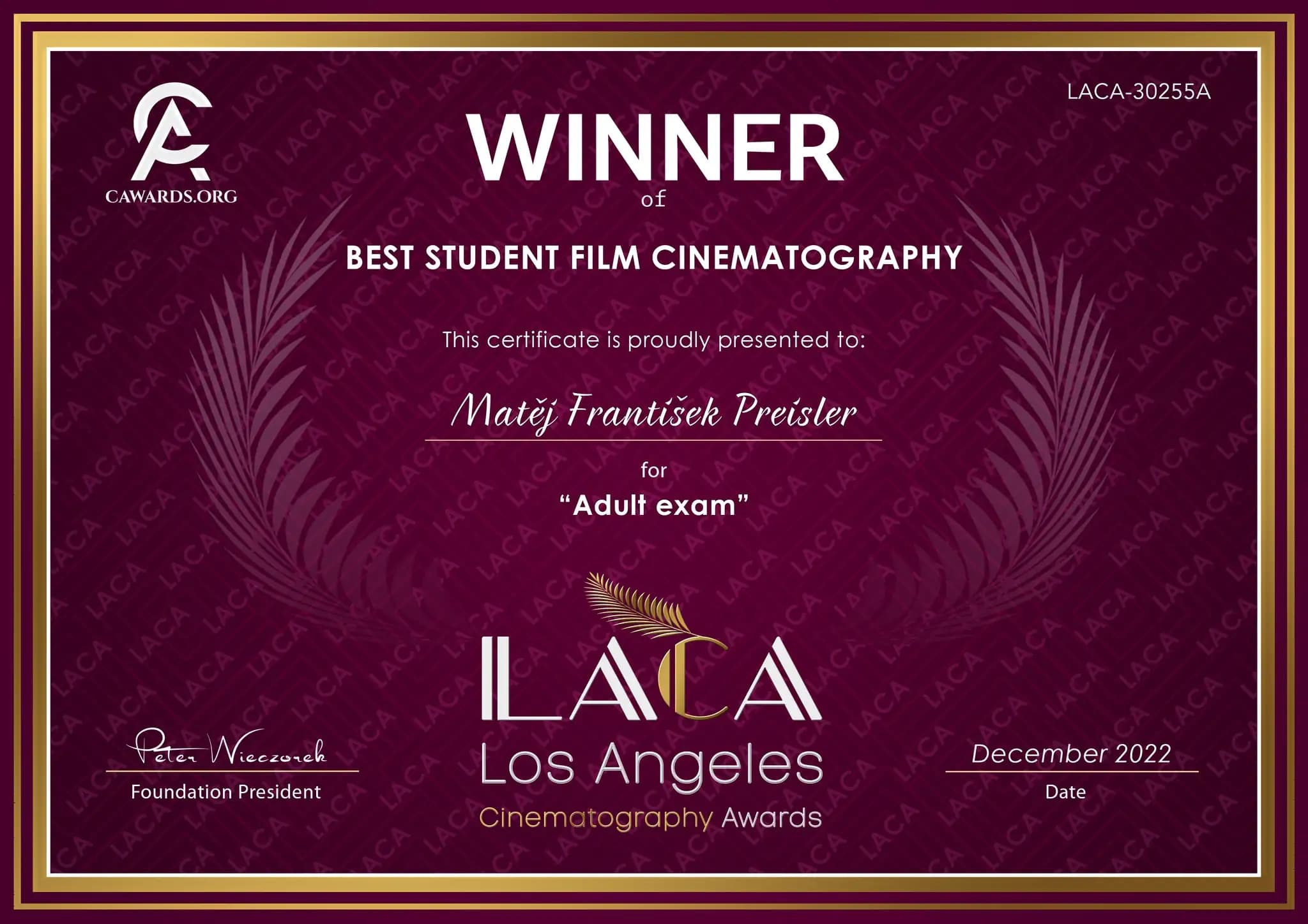 - New York Cinematography AWARDS (NYCA) ↗ – BEST STUDENT FILM a BEST STUDENT DIRECTOR